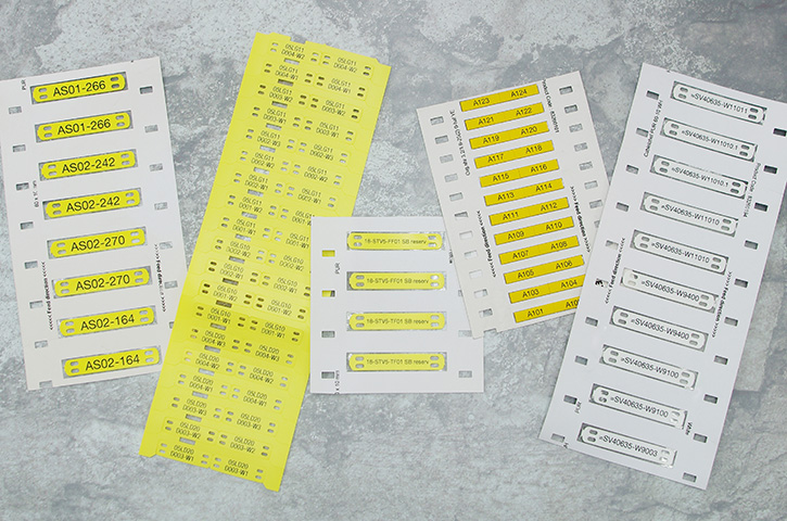 Kabelmärkning och partmärkning av mycket tålig och flexibel halogenfri PUR-plast. Vår kabelmärkning skall ej förväxlas med billigare ABS-märken som lätt spricker vid montering eller med ålder. PUR-märkningen är följsam och lättmonterad, mycket slitstark och tål UV-strålning under lång tid.